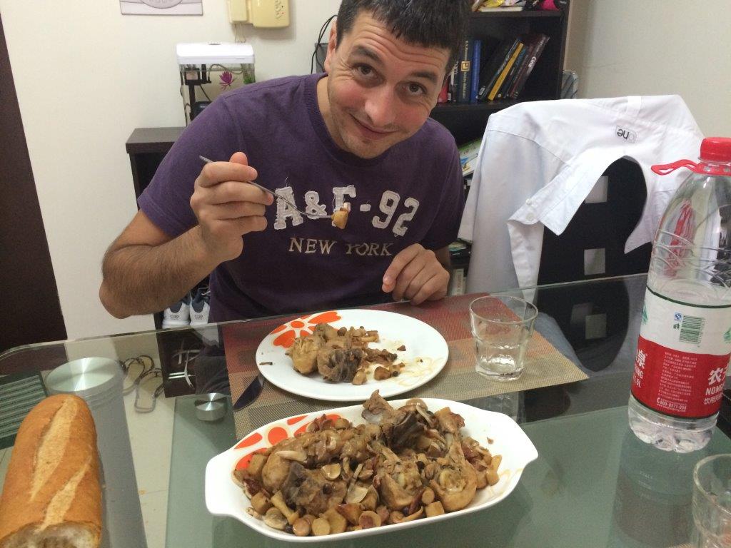 Anche la spesa diventa avventura, tra un rospo e una biscia d'acqua scegliamo il classico pollo che con due funghetti ed un paio di costine di maiale diventa uno pseudo tocio coi chiodini....manca solo la polenta....quasi !!!